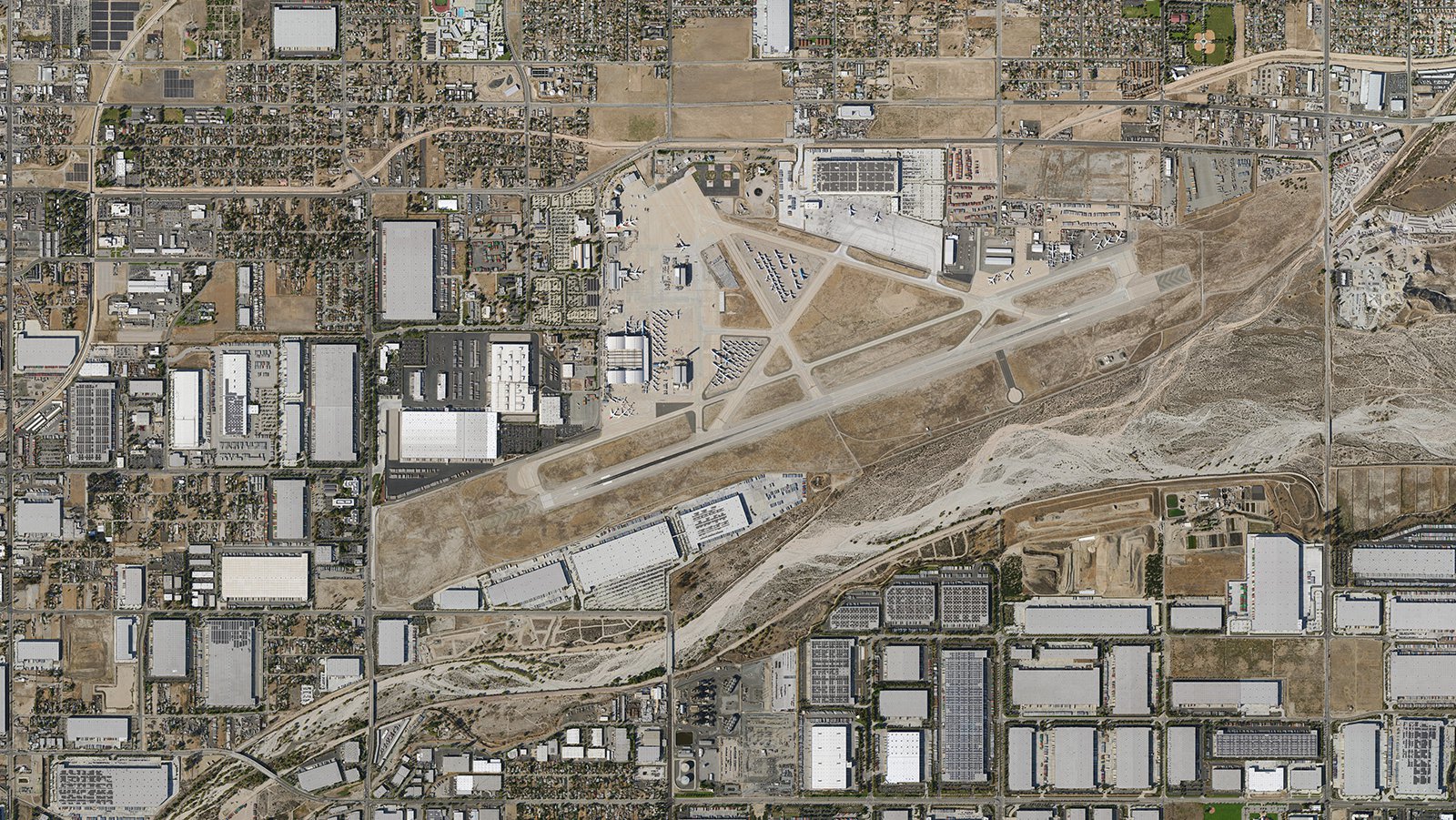 Orthophoto of San Bernardino International Airport, a former Air Force base turned global cargo powerhouse.